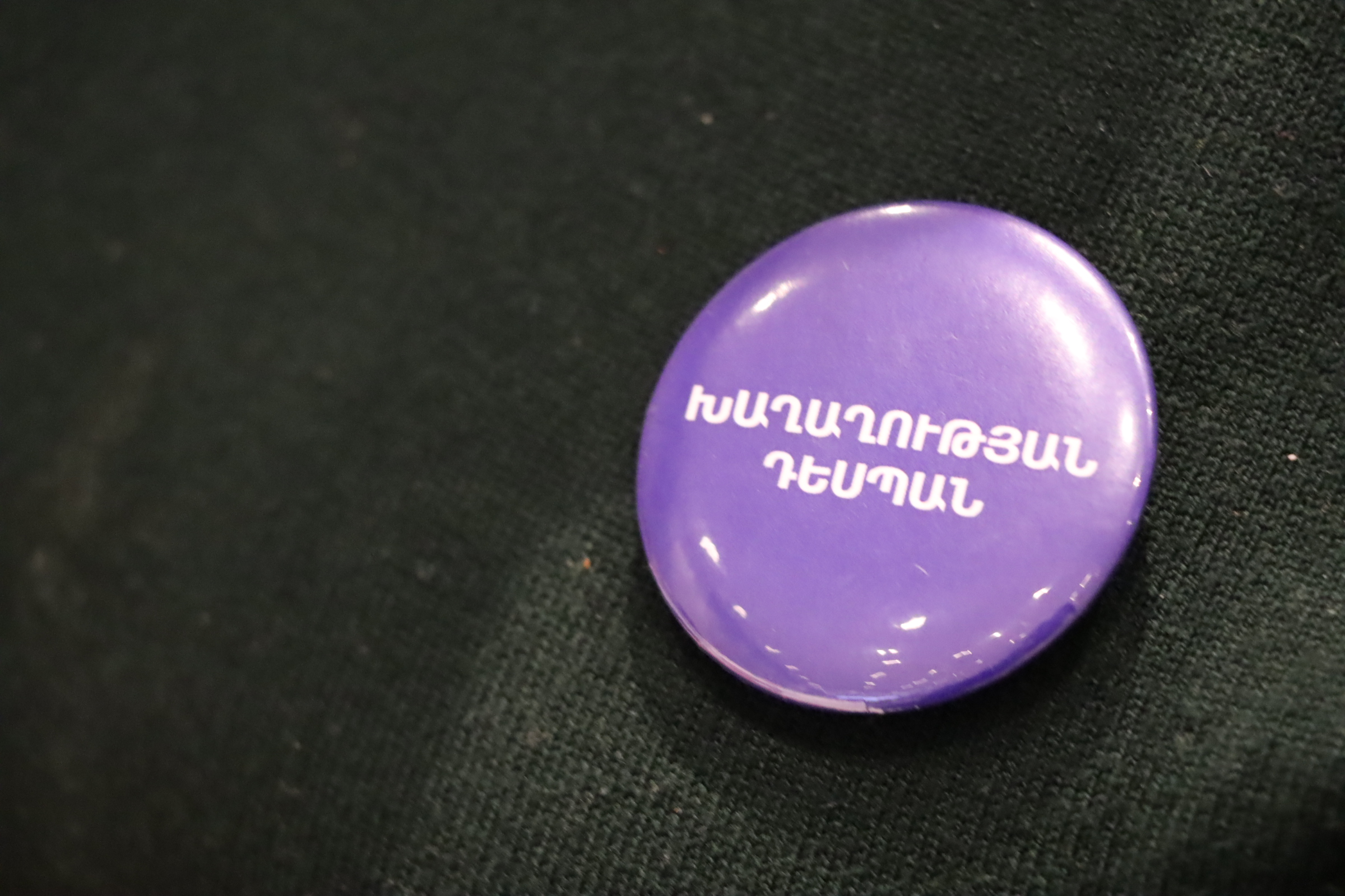 լուսանկարում փին է, որի վրա գրված է խաղաղաշինության դեսպան